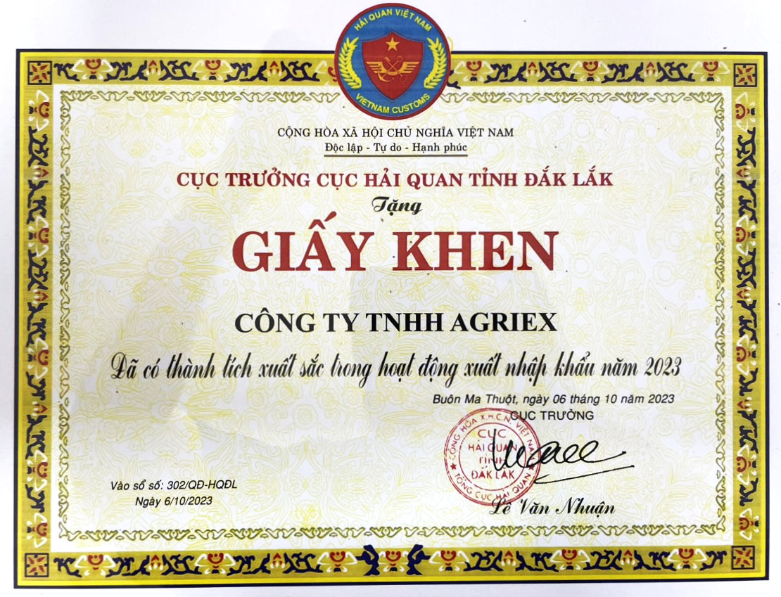 日本農家と共にベトナムで農業および食品製造を手がけ、日本での輸入と販売を行っている株式会社HOLUS(東京都渋谷区、代表取締役:阿部秀昭、以下、HOLUS(ホーラス))のベトナム法人AGRIEX(アグリエックス)が「2023年税関・企業対話会議(CHỨC CHƯƠNG TRÌNH GẶP GỠ DOANH NGHIỆP – HẢI QUAN ĐẮK LẮK NĂM 2023)」においてダクラク税関局から、輸出入活動におけるこれまでの優れた功績を称えられ、功績証明書を授与されました。